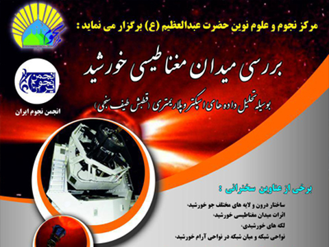 مركز نجوم و علوم نوين آستان مقدّس در راستاي آماده سازي و معرّفي همايش ملي تازه هايي از فيزيك خورشيد و اهداي نهمين دوره جايزه علمي - ترويجي حضرت عبدالعظيم عليه السلام كه در اسفند ماه برگزار ميگردد ، اقدام به برگزاري كارگاه علمي بررسي ميدان مغناطيسي خورشيد بوسيله تحليل داده هاي اسپكتر و پلاريمتري (قطبش طيف سنجي) در اول دي ماه نموده است .