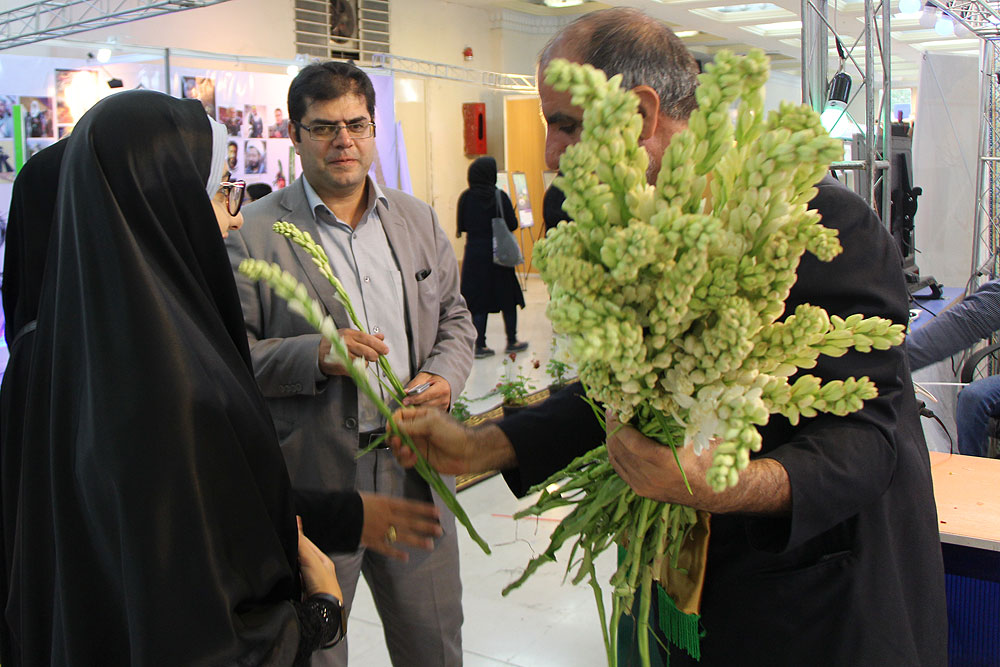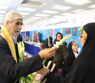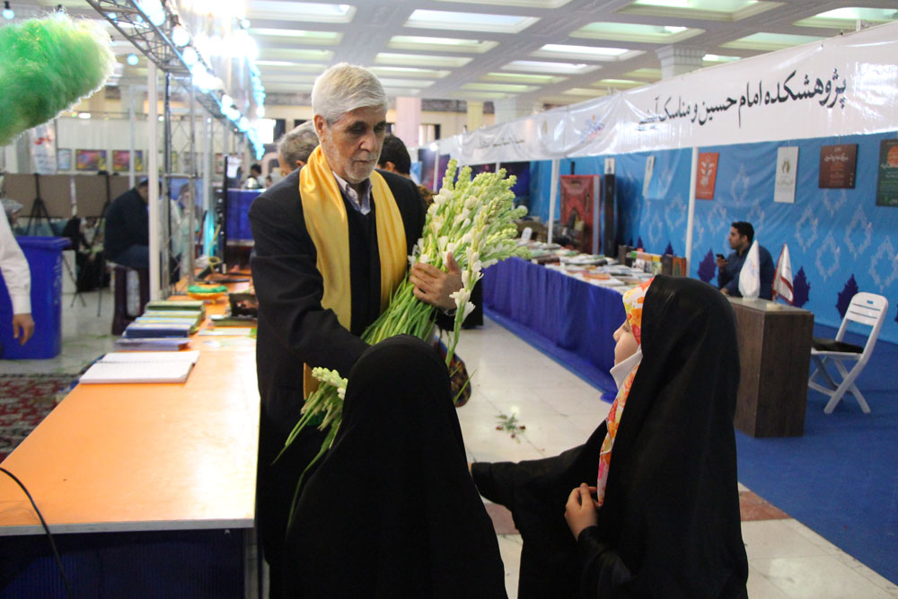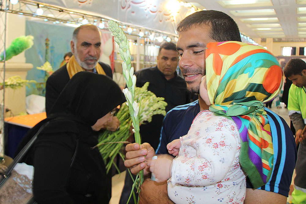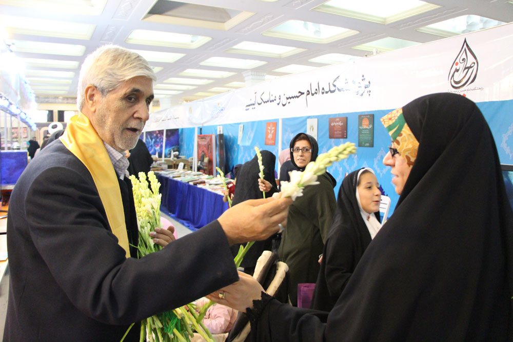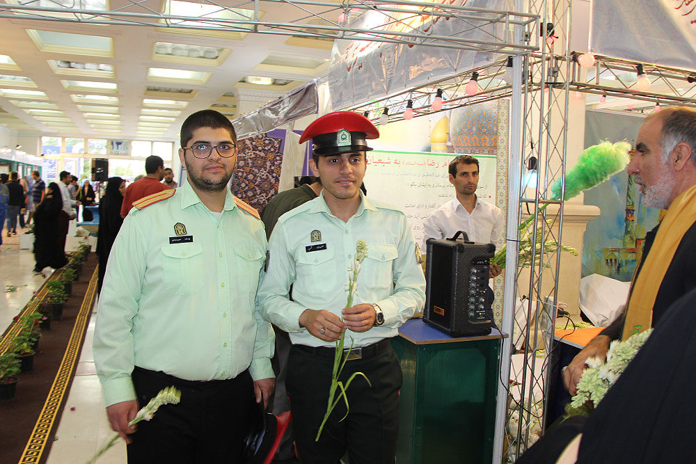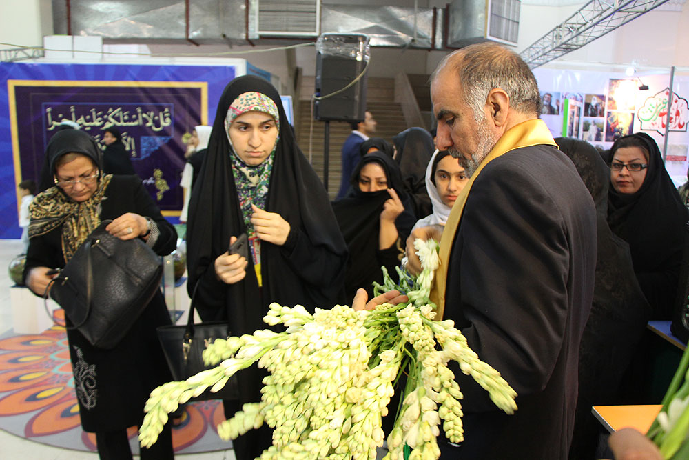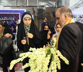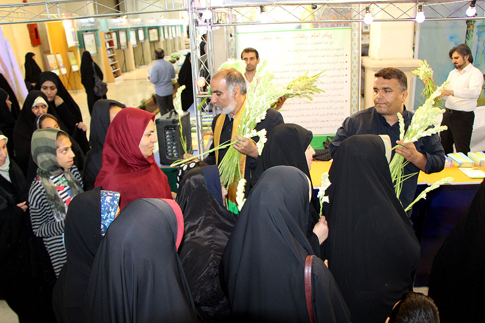 توزیع گل به بازدیدکنندگان غرفه آستان مقدس در شب ولادت امام حسن مجتبی(ع) 97.3.9