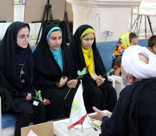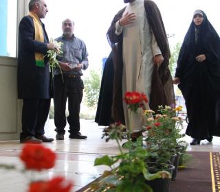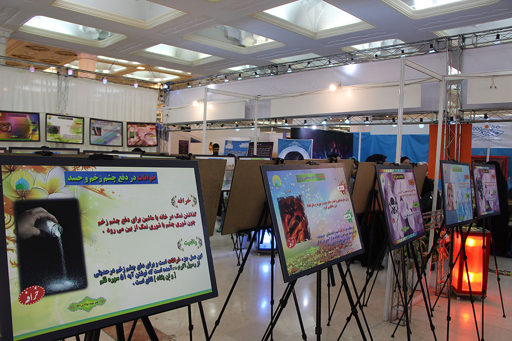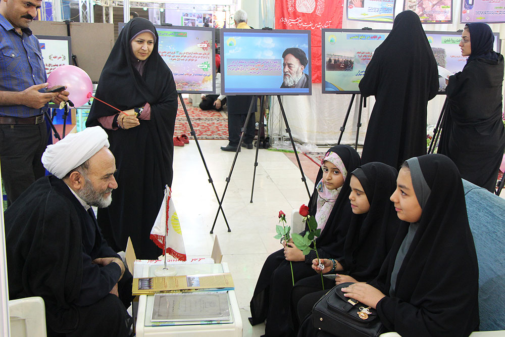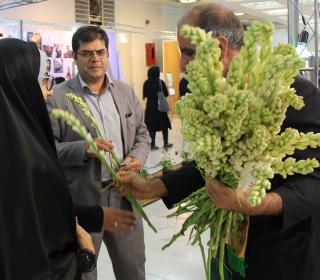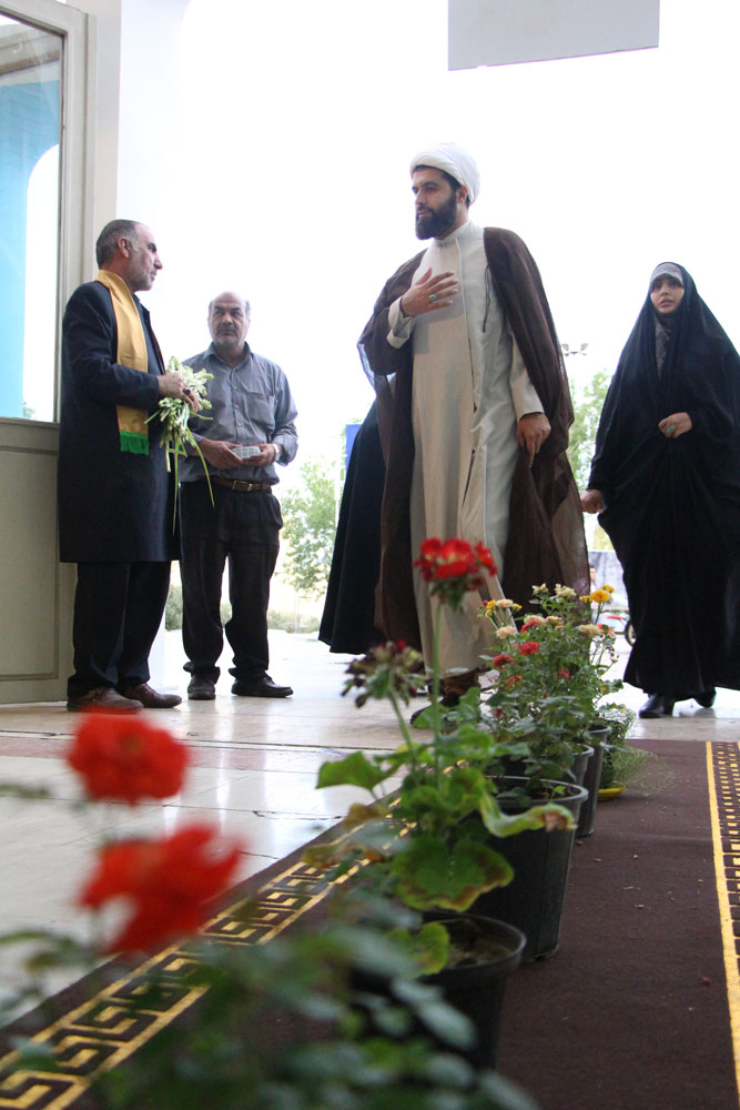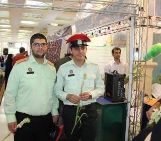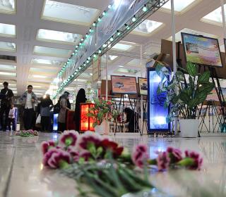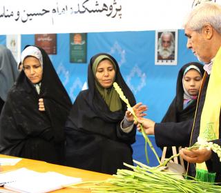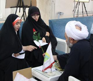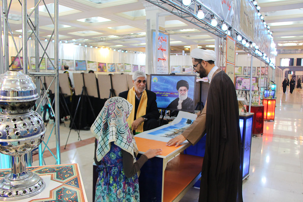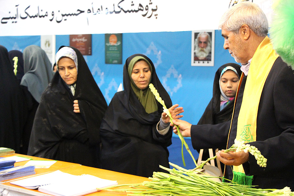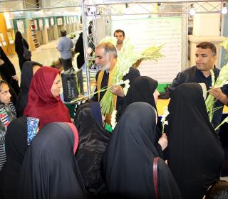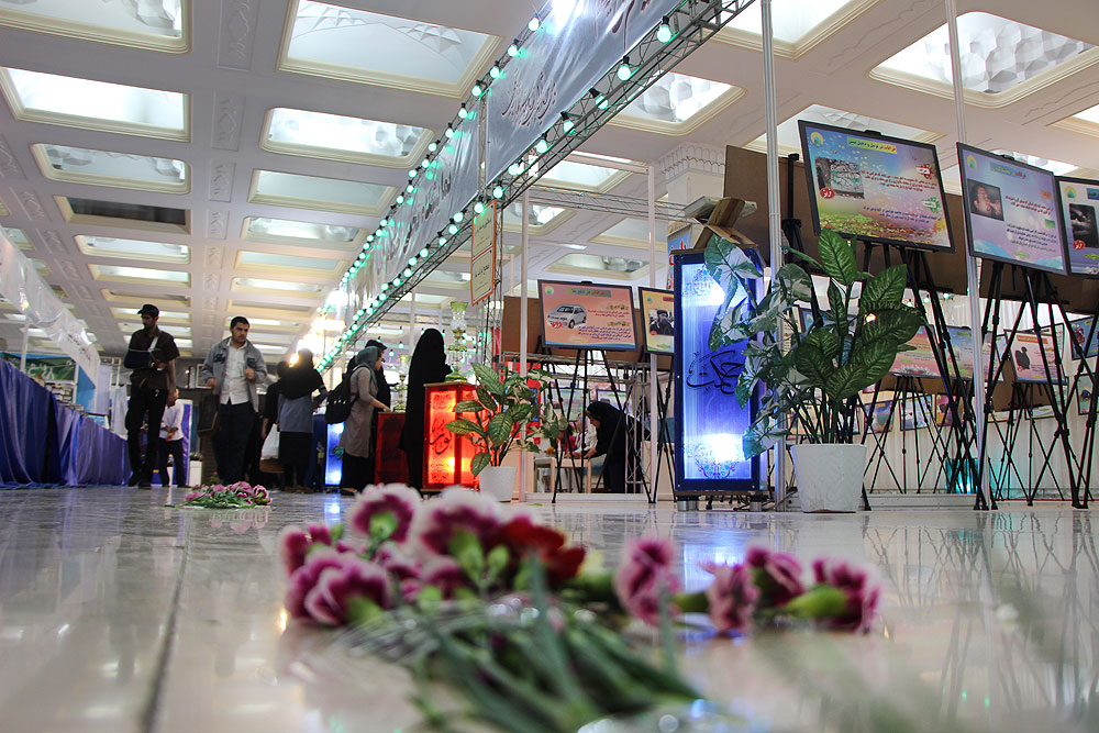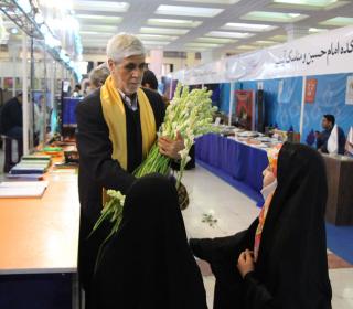 توزیع گل به بازدیدکنندگان غرفه آستان مقدس در شب ولادت امام حسن مجتبی(ع) 97.3.9