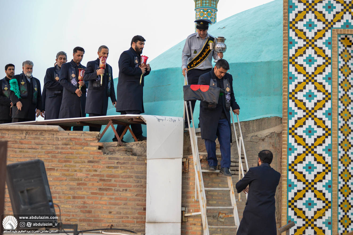 اهتزاز پرچم گنبد حرم امام حسین(ع) بر فراز بارگاه حضرت عبدالعظیم(ع) / عکس:...