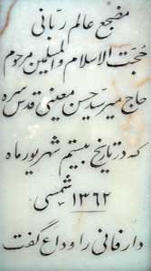 حجت ‏الاسلام والمسلمين حاج سيد حسن معينى، فرزند مرحوم حاج سيد طاهر معينى از علماء تبريز و شهر رى مى ‏باشد.