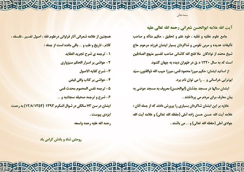 گزاره اى از حيات علمى آيت اللّه شعرانى در مقدمه ترجمه نفس المهموم خود نگاشته اند:
