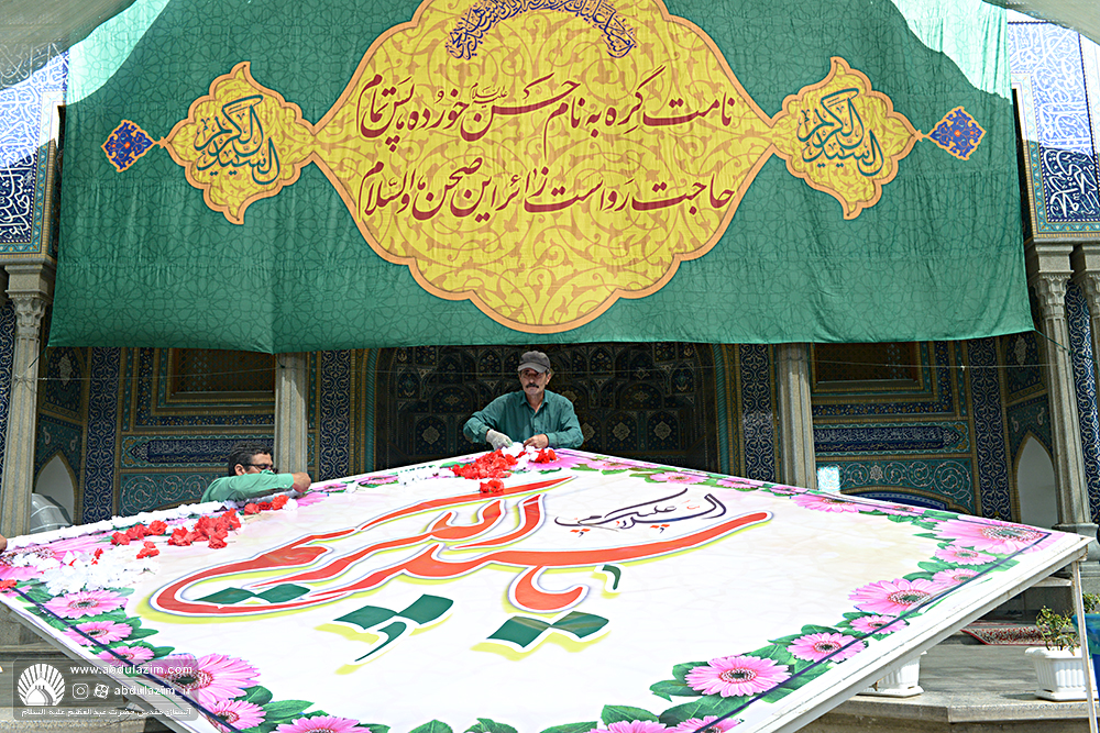 16472--عکس۱۴۰۳/۰۲/۰۳نصب کتیبه های عزای ایام رحلت حضرت عبدالعظیم(ع) / عکس: اسدی