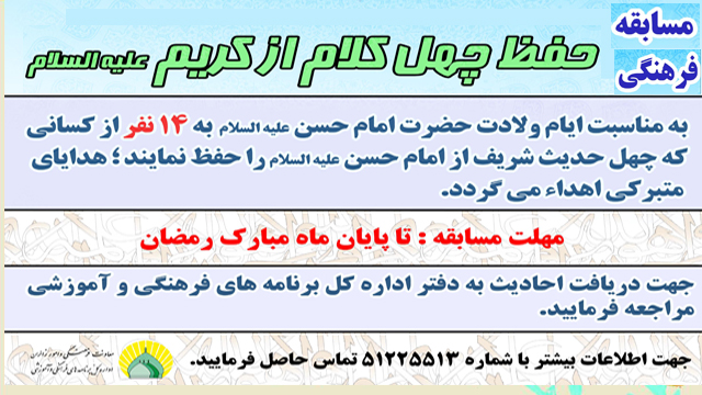 2138--عکس۱۳۹۶/۰۳/۲۲مسابقه فرهنگی حفظ چهل کلام از کریم علیه السلام